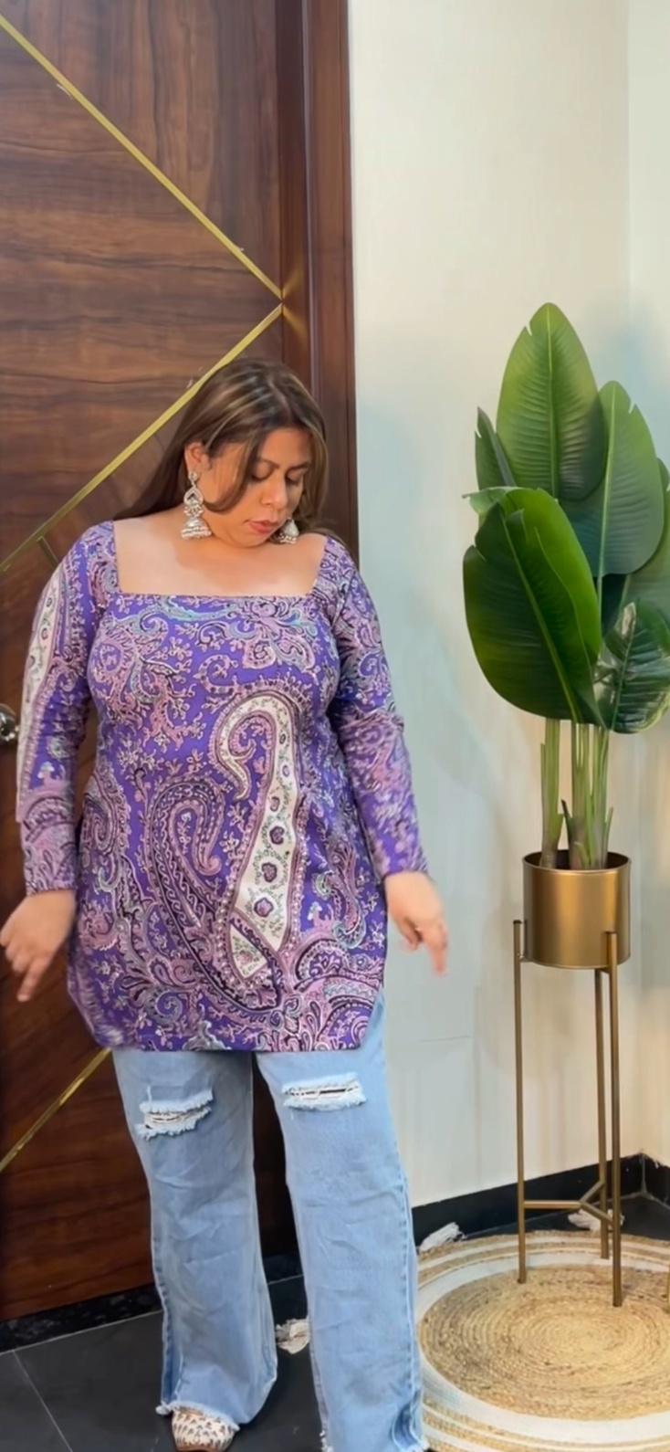 Floral V Neck kurti (pink)