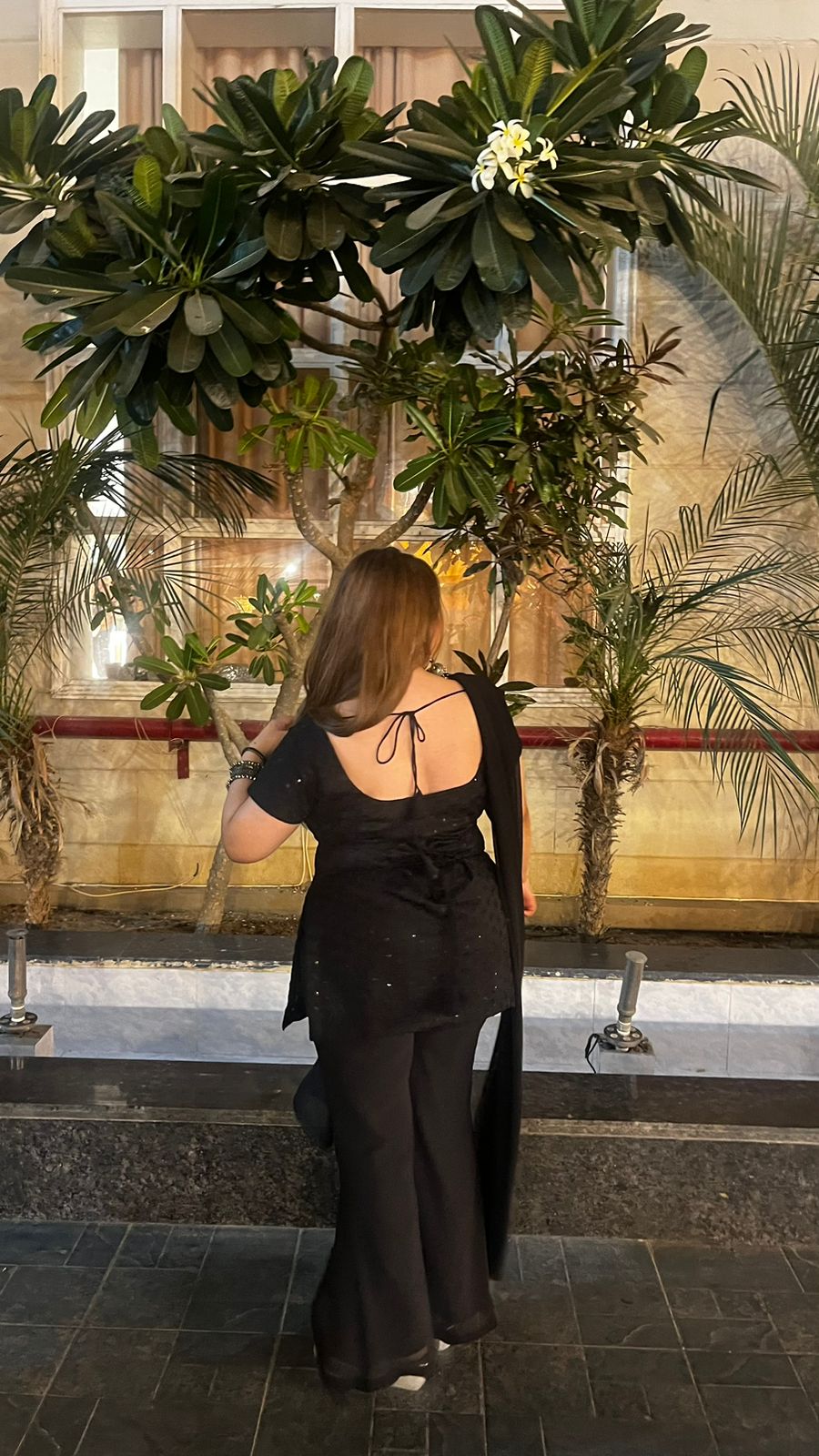 Schiffli Georgette Short Kurti Georgette Sharara Dupatta