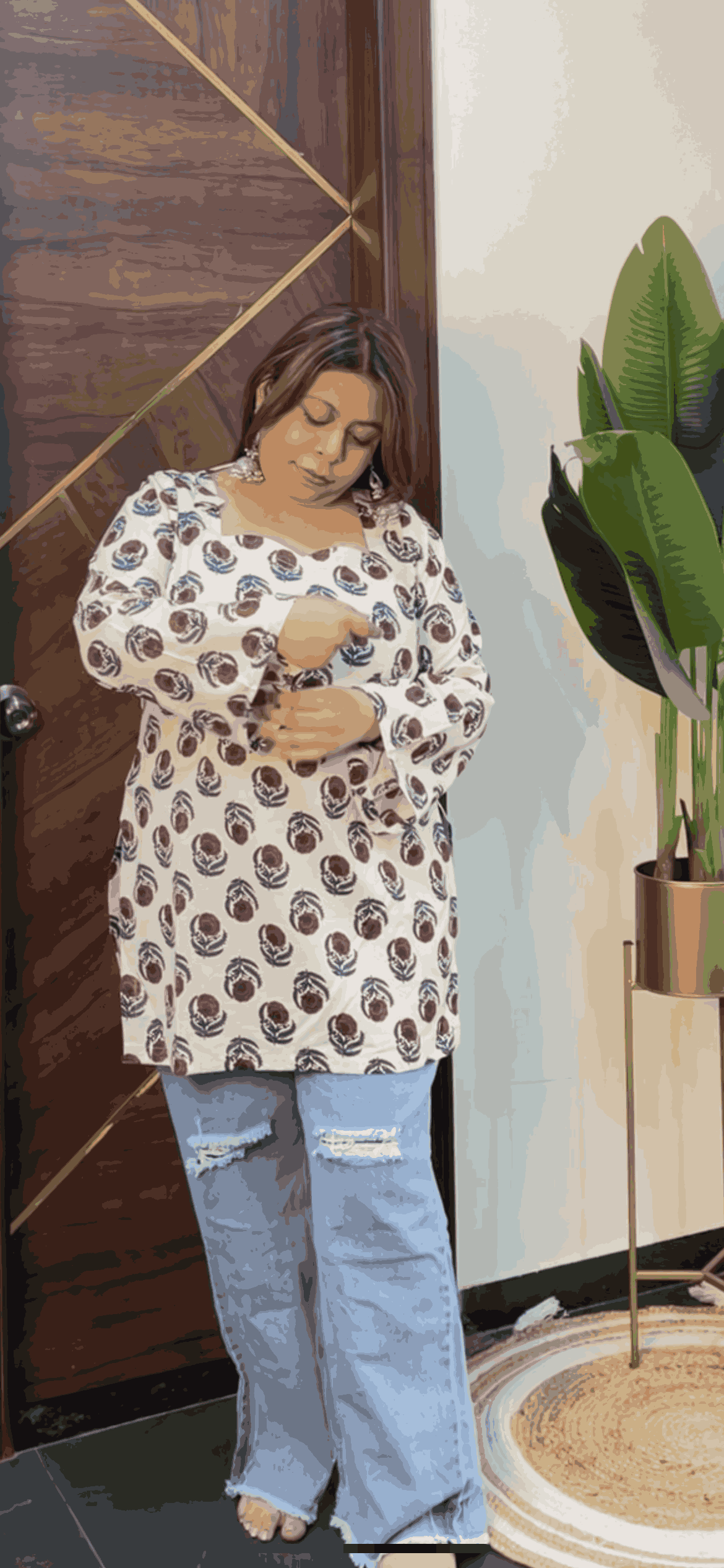 Sweetheart neck bell sleeve kurti